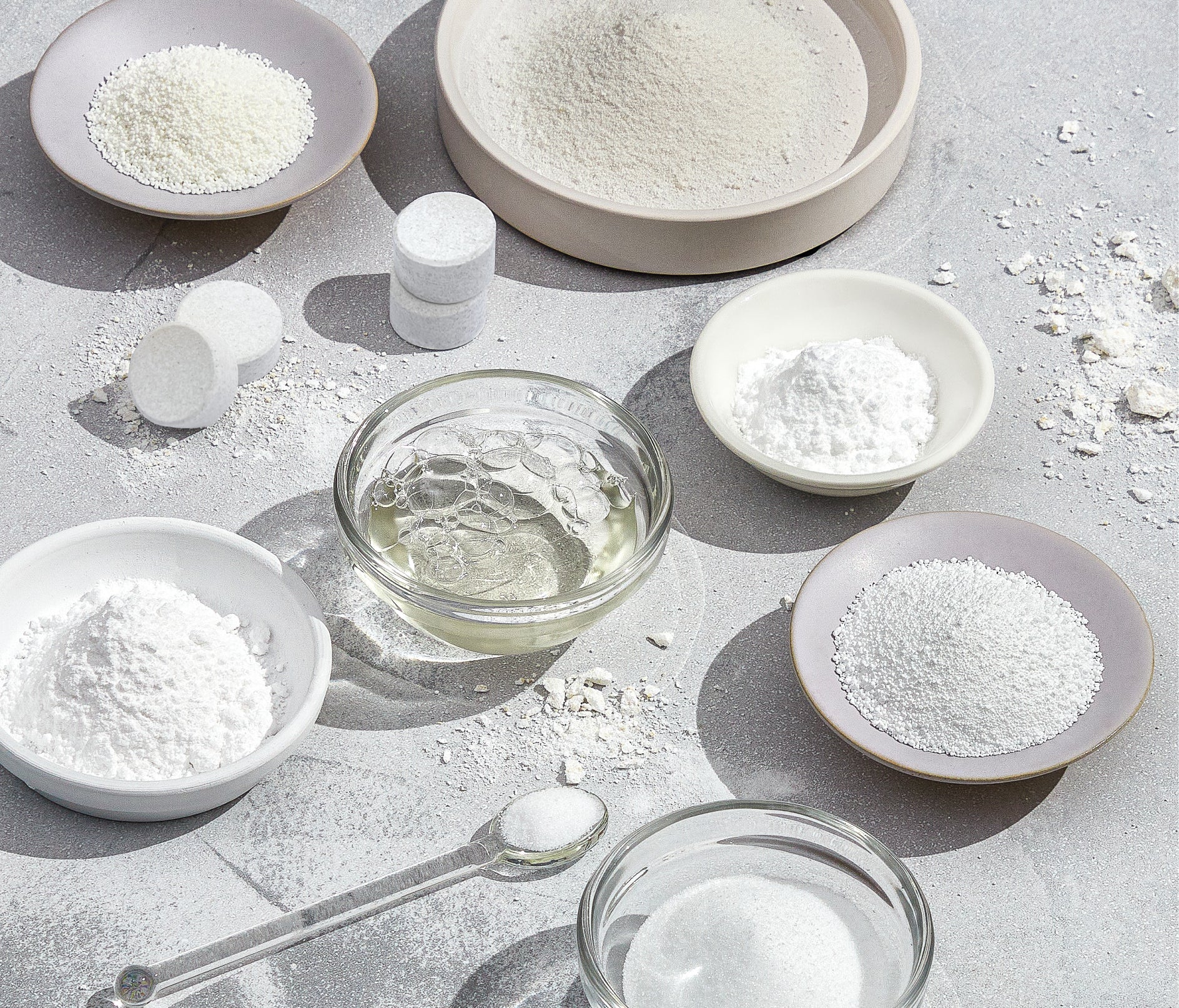 Sodium Carbonate, Sodium Percarbonate, Citric Acid, Sodium Citrate, Poly (itaconic acid-co-AMPS) Sodium Salt, Sodium Gluconate, Protease, Sodium Metasilicate, Amylase, Sodium Lauryl Sulfoacetate, Potassium Caprylate