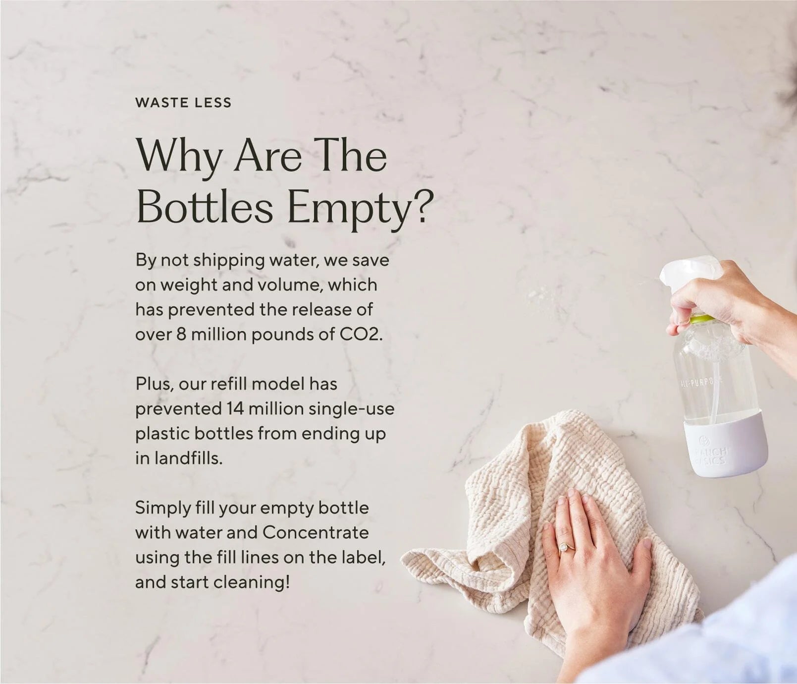 This refillable bottle arrives empty and is designed to be mixed with water and Branch Basics Concentrate using the fill lines on the bottle. Leaves your mirrors, windows, glass and electronics shining!